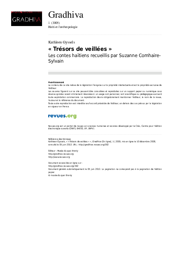 - 1974 : Jetons nos couteaux ! : Contes des garçonnets de Kinshasa et quelques parallèles haïtiens, Centre d'études ethnologiques, Bandundu, Zaïre.